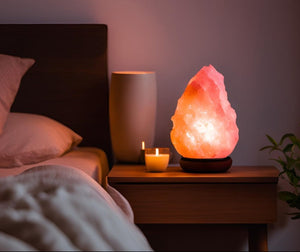 No two lamps are alike — the raw crystal form, warm hue, and artisanal craftsmanship make each lamp a one-of-a-kind wellness statement.